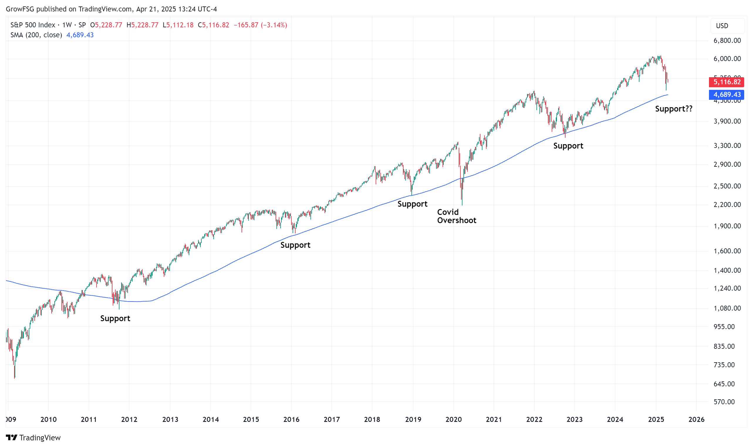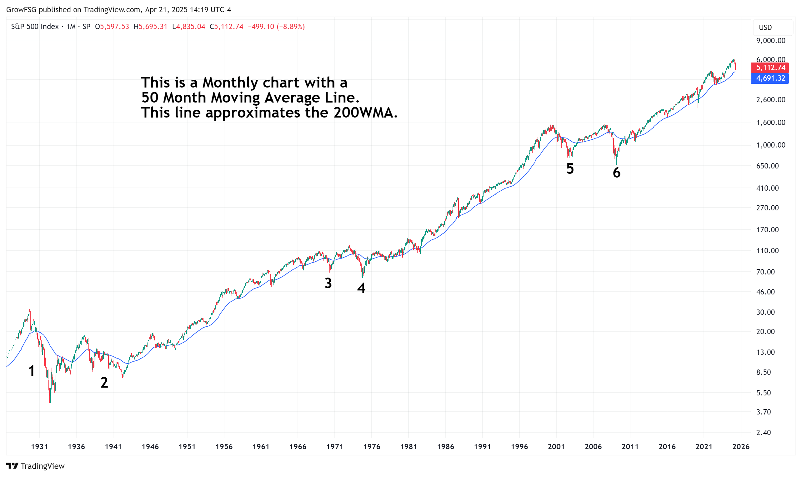 The 200WMA has been an important support level between every significant bear market for over 100 years! In fact, there have only been six instances where the S&P500 spent significant time below the 200WMA since 1925.