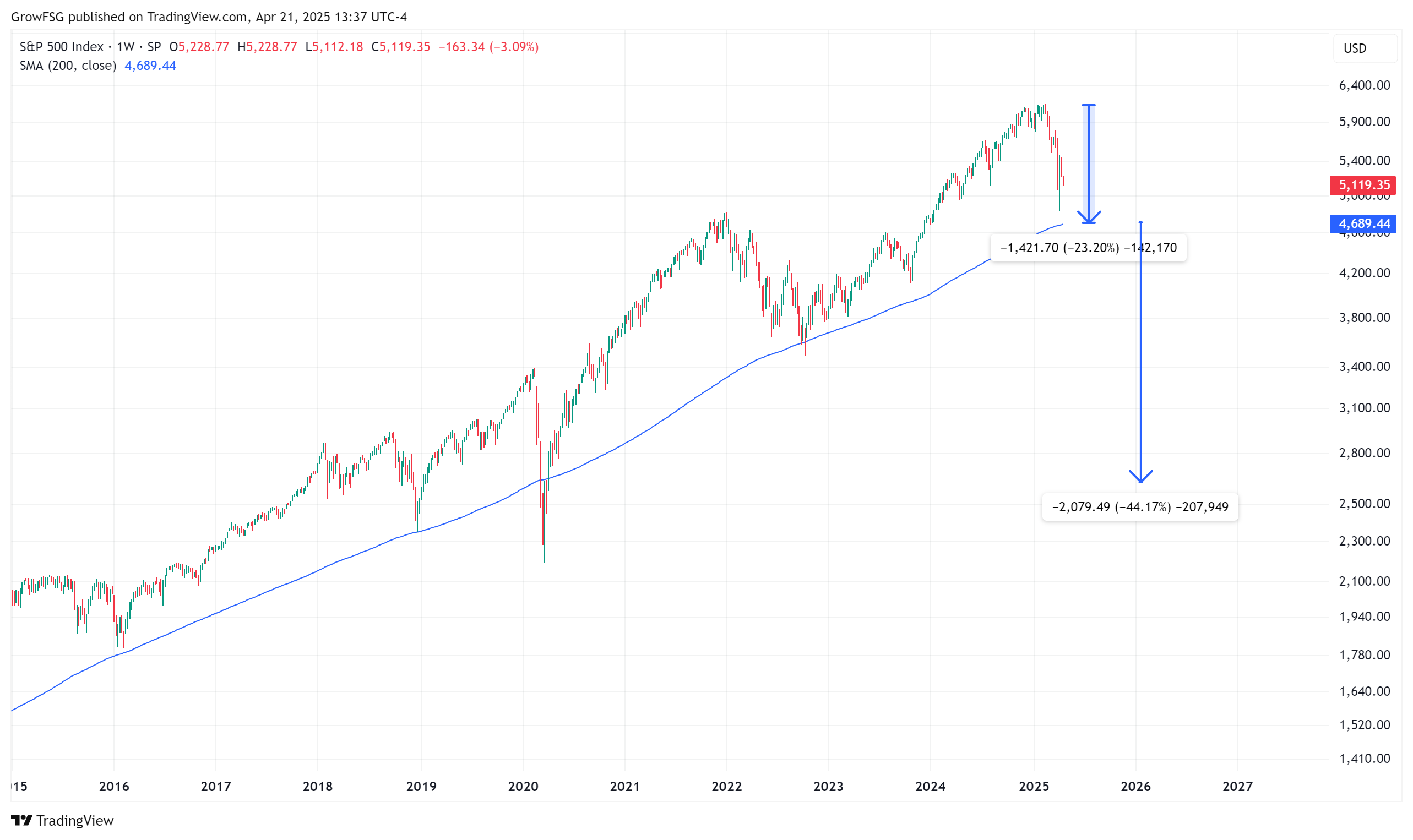 The average drop when support failed in 2001 and 2008 was an additional 44% decline. That price on the S&P500 is 2650 and is a perfect Fibonacci 38% correction of the entire bull market from the 2009 low to the 2025 peak.